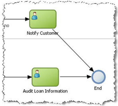 Although this can sometimes be the case, the Implicit Termination pattern provides an alternative to forcing sequence flows directly through an End event. This is sometimes necessary because a process might need to reach the End event from many activities in a process.