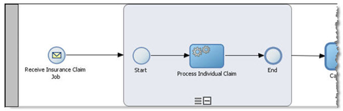 This pattern takes a batch job and processes each individual item in it without worrying about synchronizing them back into the process. It is usually modeled as shown below using the Subprocess’s Multi-Instance loop characteristic designated by the three horizontal bars at the bottom of the Subprocess activity.