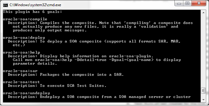 Oracle 12c Maven plug-in comes with two basic archetypes for SOA applications: Application and Archetype. If you try it using the command window, simply run the following command to generate the application and done.